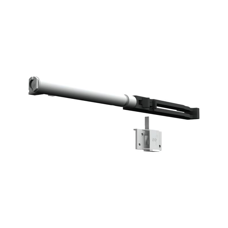 Système d'amortisseur permettant une fermeture tout en douceur de la porte. Grâce à un doigt d'entrainement fixé sur le panneau, l'amortisseur accompagne la porte de façon automatique jusqu'à la position fermée. Pour panneau de 35 Kg maximum.