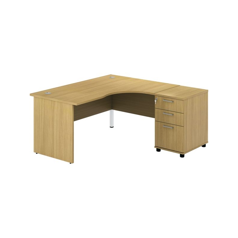 Bureau droit avec plan de travail de 25 mm d'épaisseur. Compatible avec le chargeur QI sans fil réf. 100583, le bloc encastrable prise électrique + USB réf. 100584, et la goulotte réf. 100582, nous consulter. 2 vérins de réglage discrets sous chaque pied panneau. 2 perçages pour passage câble avec obturateur, goulotte passe-câbles (en option). Caisson mobile 3 tiroirs à fermeture centralisée, dont un pour dossiers suspendus. Livré démonté.