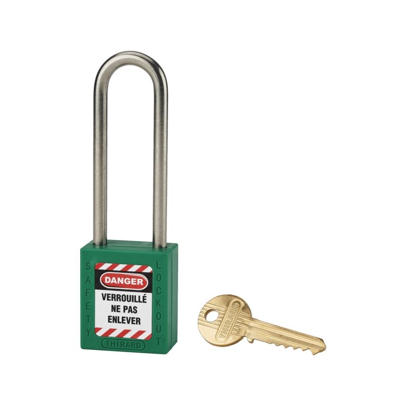 Corps ABS non conducteur avec anse en acier inoxydable. Double ancrage. Livré avec 1 clé. Fonction clé prisonnière. Corps (L x H) : 38 x 44 mm