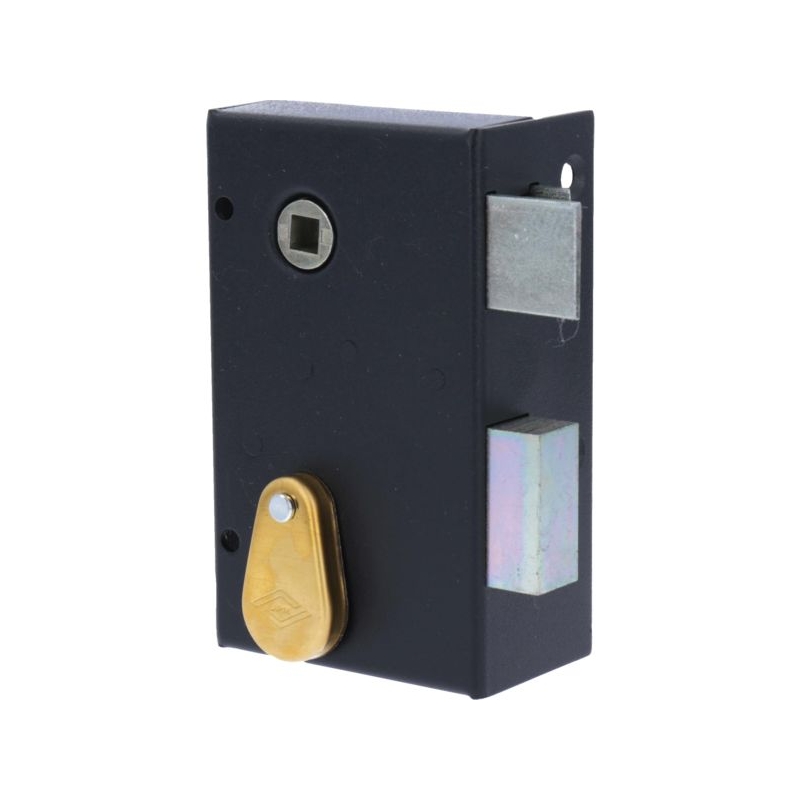 Coffre de grille 4 gorges en acier nickelé - 24 variures. Livré avec gâche et 2 clés. Saillie pêne : 21 mm Finition : époxy noir Modèle horizontal : Coffre : 140 x 88 x 25 mm Entraxe : 57 mm Axe : 56 mm Fouillot carré : 6 mm Modèle vertical : Coffre : 70 x 116 x 25 mm Entraxe : 68 mm Axe : 44 mm Canon : 40 mm Fouillot carré : 7 mm