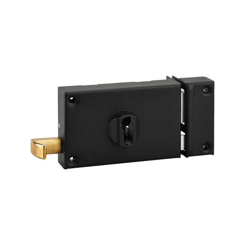 Pour cylindre profilé. En acier cambré. Pêne et ½ tour en acier zingué. Mécanisme à 2 tours. Livré avec gâche, sans cylindre. Coffre : 140 x 88 mm Axe : 60 mm Entraxe : 55 mm Fouillot carré : 7 mm Finition : époxy noir