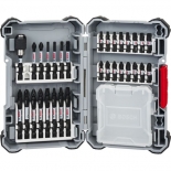 Embout long Phillips®, Torx® : - 1 PH2, - 1 PZ2, - 1 T15, - 1 T20, - 1 T25, - 1 T30. Embout double empreintes Phillips®, Pozidriv®, longueur 65 mm : - 1 PH1-PH2, - 1 PH2-PH3, - 2 PH2-PZ2, - 1 plat 5.5, - 2 T15-T20, - 1 T25-T30. Embout Phillips®, Pozidriv®, Torx®, longueur 25 mm : - 1 PH1, - 3 PH2, - 1 PH3, - 2 PZ2, - 1 PZ3, - 1 T15, - 2 T20, - 2 T25, - 2 T30, - 1 T40. Porte-embout universel.