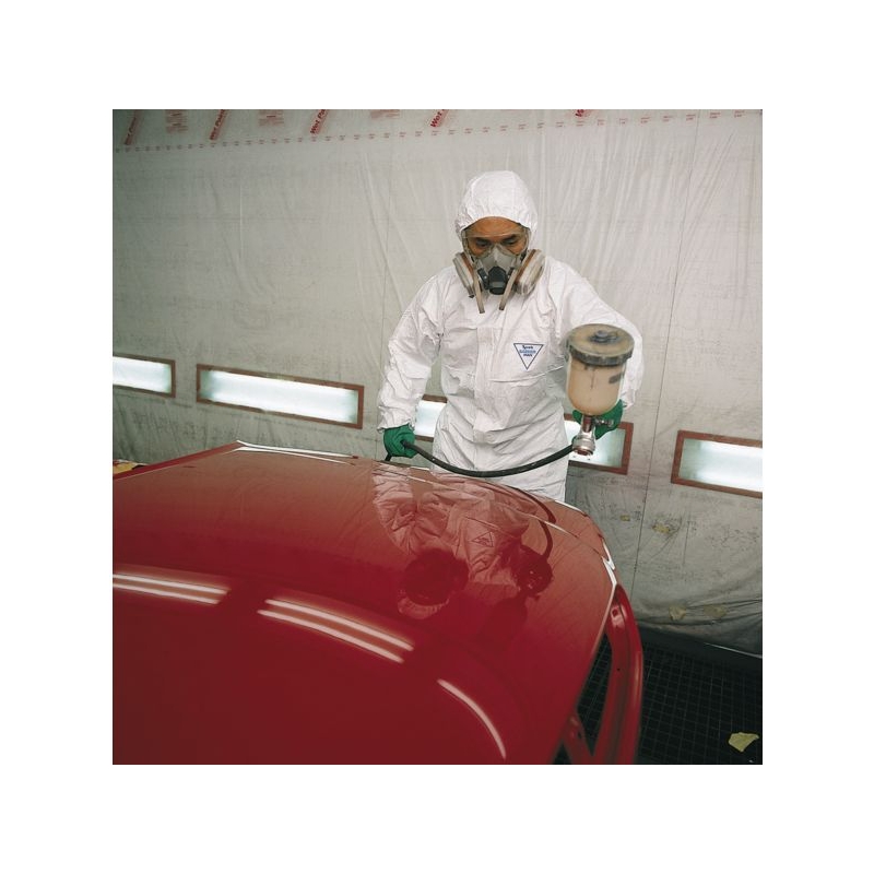 Non tissé Tyvek® de Dupont. Capuche en 3 parties pour un ajustement optimal (particulièrement adaptée au port du masque). Fermeture éclair avec blocage automatique et rabat en Tyvek®. Taille élastique collée, élastique aux poignets, à la capuche et aux chevilles. Utilisation : barrière contre les particules > 1µ, contre les liquides chimiques, résistance à la pression liquide 120 cm. Coloris : blanc (BC) Taille : 2 à 6 Norme : CE - Cat III - types 5B 6B - EN 1149-5 - EN 1073-2 - EN 14126 Pour commander, faire suivre le code du coloris et de la taille (ex : 10414-BC-2).