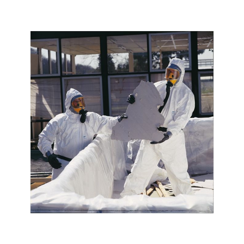 Non tissé Tyvek® de Dupont. Capuche en 3 parties pour un ajustement optimal (particulièrement adaptée au port du masque). Fermeture éclair avec blocage automatique et rabat en Tyvek®. Taille élastique collée, élastique aux poignets, à la capuche et aux chevilles. Utilisation : barrière contre les particules > 1µ, contre les liquides chimiques, résistance à la pression liquide 120 cm. Coloris : blanc (BC) Taille : 2 à 6 Norme : CE - Cat III - types 5B 6B - EN 1149-5 - EN 1073-2 - EN 14126 Pour commander, faire suivre le code du coloris et de la taille (ex : 10414-BC-2).