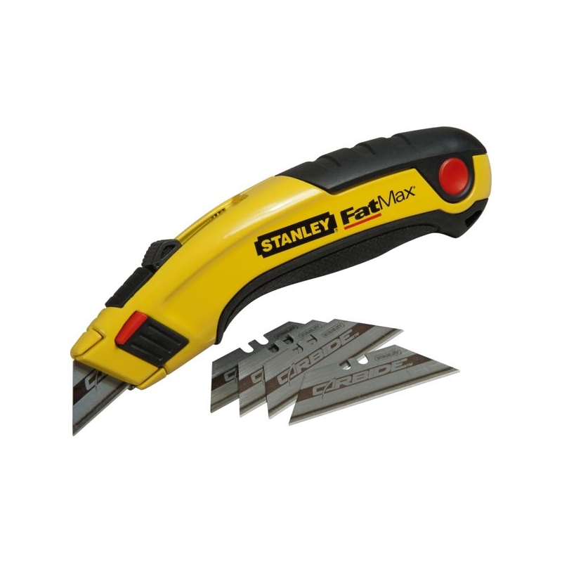 Remplacement frontal de la lame sans outils par simple pression sur le bouton. Réglage de sortie de la lame sur 4 positions différentes selon la profondeur de coupe. Corps en acier et un revêtement bimatière. Réservoir de 5 lames. Livré avec 5 lames trapèze au carbure de tungstène.