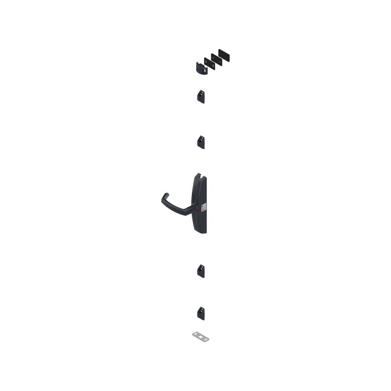 Pour tout type de porte bois, alu, pvc, acier montée sur pivot ou sur paumelles, n'excédant pas 200 kg et de dimensions inférieures ou égales à 2520 mm de haut et 1320 mm de large. Ouverture par rotation ¼ de tour. Visualisation ouvert/fermé par signalétique vert/rouge, manœuvrable de l'extérieur. Fournie à main gauche, inversion rapide du sens de la main lors du montage. Ensemble composé de : - 1 boîtier, - 4 guides de tringle, - 1 gâche basse, - 1 gâche haute avec cales, - cales. Conforme à la norme EN 179.