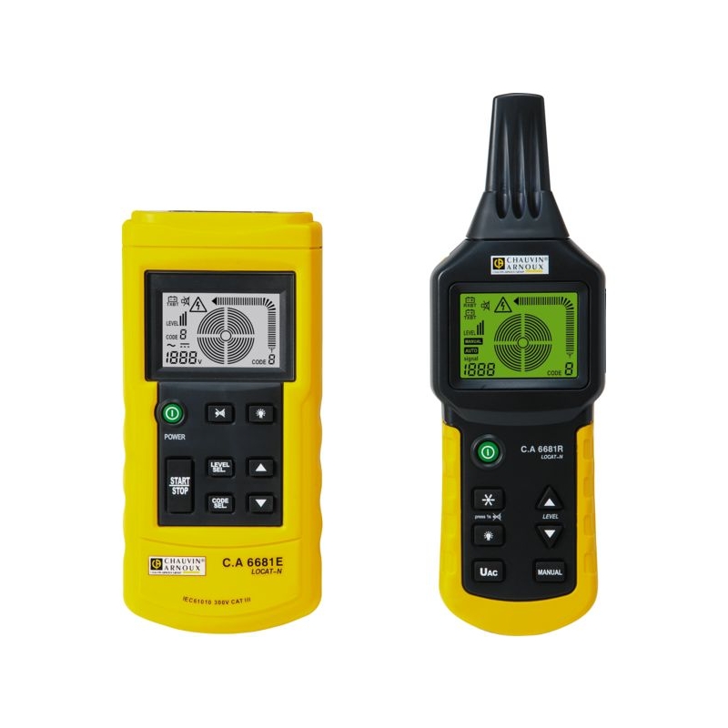 Composé d’un émetteur C.A 6881E et d’un récepteur C.A 6881R. Le récepteur affiche la valeur du signal mesuré, par un graphique à barre ou sous forme de signaux acoustiques. Permet de suivre les câbles électriques à travers les murs, de retrouver les tuyaux enterrés dans les sous-sols... Le récepteur retrouve rapidement le disjoncteur ou les fusibles correspondant à une prise sur laquelle l’émetteur est branché, permet de détecter des court-circuits ou coupures sur des installations. Fréquence du signal de sortie : 125 kHz Plage de mesure de tension externe : 12 à 600 VAC/DC Alimentation : 1 pile 9 V Dimensions : 190 x 89 x 42,5 mm Poids : 420 g avec pile CAT II 300 V