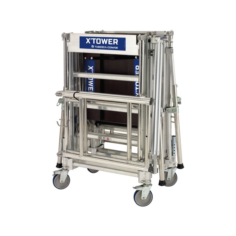 Utilisation sur sol plat. En aluminium, télescopique. Structure rectangulaire renforcée. Plancher réglable tous les 25 cm. 4 stabilisateurs à réglage millimétrique. 4 roues Ø 150 mm réglables. Montage rapide par 1 personne. Dimensions plancher : 1,54 x 0,60 m Norme : EN 1004 - décret 2004 924