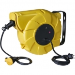 Montage mural ou au plafond. Pivotant sur socle. Câble H07RN-F 3G2,5 mm². Fiche 2P+T 16 A - 230 V à clapet. Prolongateur à clapet 2P+T 16 A - 230 V. Disjoncteur thermique. Voyant de mise en service. Puissance maxi. : - câble déroulé : 1800 W - câble non déroulé : 1200 W Longueur : 12 m + 1,5 m Indice de protection : IP 44