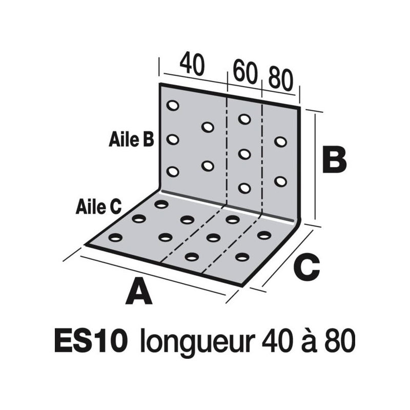 Acier galvanisé. Pour lisse et montant de bardage, ancrage de chevron, console, renforcement d'assemblages existants... sur supports bois. Épaisseur : 2,5 mm Agrément : ETE-06/0106 Prix à la pièce, vendue par boîte.