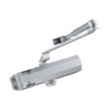Technologie pignon et crémaillère, bras compas. Force 3 fixe. Vitesse de fermeture, à-coup final et frein à l'ouverture réglables. Largeur du vantail : jusqu'à 950 mm Poids du vantail : jusqu'à 60 kg Finition : argent