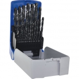 Affûtage en croix (angle de pointe 118°). Pour acier et acier faiblement allié. Foret HSS DIN 338. Composé de 25 forets de Ø 1 à Ø 13 mm par 0,5 mm.