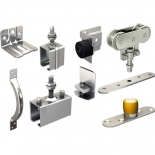 Pour porte de 150 kg maximum. Montage profil U, guide bas 1 olive. Composée de : - 2 montures 0255A avec 2 galets en acier montés sur cage à rouleaux, - 2 platines 0056 pour fixation sur chant, - 7 (code53708) ou 10 (code 53709) supports enveloppants 5041, - 1 support manchon 5041MC, - 8 (code 53708) ou 11 (code 53709) pattes équerre 5043, - 2 enjoliveurs 5050, - 2 guides du bas à olive à visser 1099, - 2 butées 2091, - 1 poignée 1298.