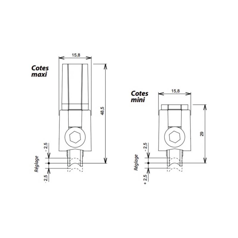| 53228 | bogie réglable | pour vantail 180 kg maxi | x 2 | 12,60 € HT 15,12 € TTC |