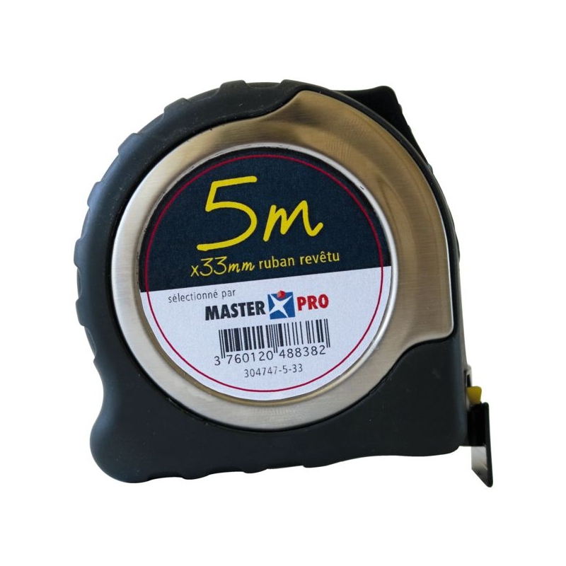 Boîtier ABS et Inox avec grip caoutchouc antidérapant. Ruban recouvert nylon. Largeur ruban : 33 mm
