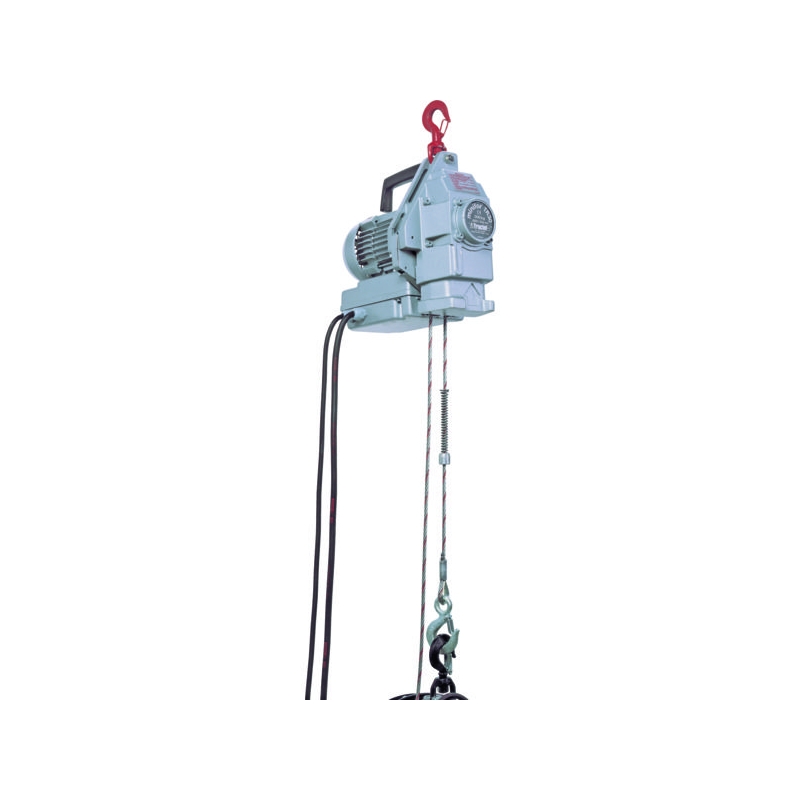 Pour travailler dans toutes les positions sans limite de hauteur. Poignée de portage. Mise en place rapide par crochet de suspension à touret orientable. Moteur 230 V monophasé avec commande par boîte à boutons avec arrêt d'urgence, longueur 2,5 m. Livré en coffret métallique (sauf réf. 21412-50). Fourni sans câble de levage (Ø 6,5 mm - en option).