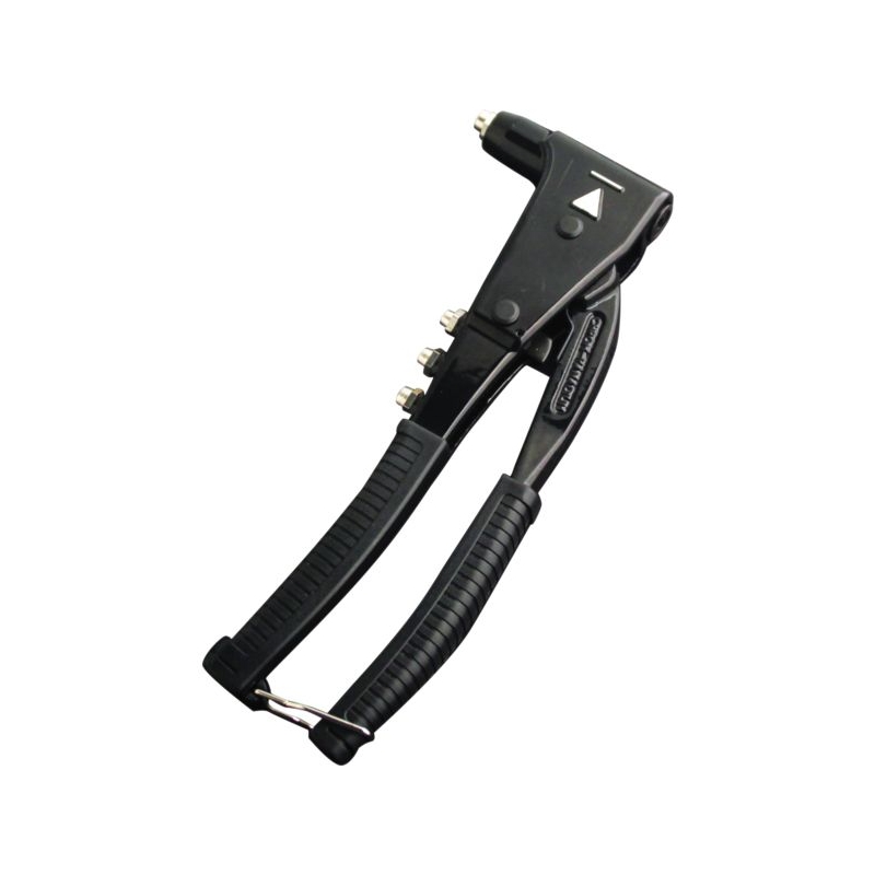 Idéale pour fixer des tôles métalliques. Pour rivets tous matériaux de 2,4 - 5 mm. Nez prolongé assurant un meilleur accès dans des espaces étroits. Longueur : 240 mm Poids : 600 g