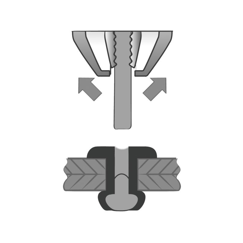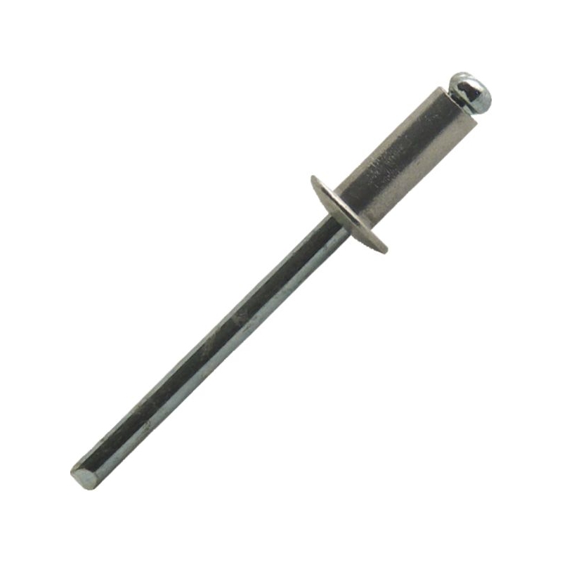 Rivet aveugle standard à tête plate. Corps aluminium et tige acier. Ø perçage : 3,1 pour rivet 3 mm - 3,3 pour rivet 3,2 mm - 4,1 pour 4 mm - 4,9 pour rivet 4,8 mm
