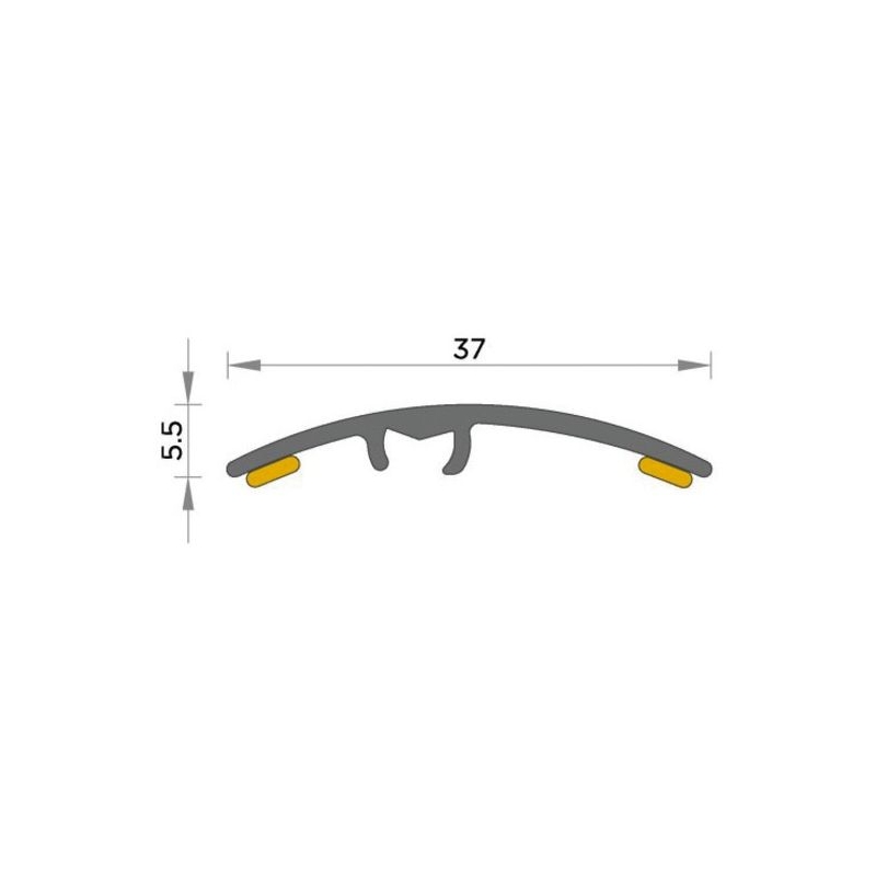 Rattrapage de niveau jusqu'à 12 mm. Fixation invisible, livré avec chevilles. Dimensions : 37 x 930 mm Finition : argent