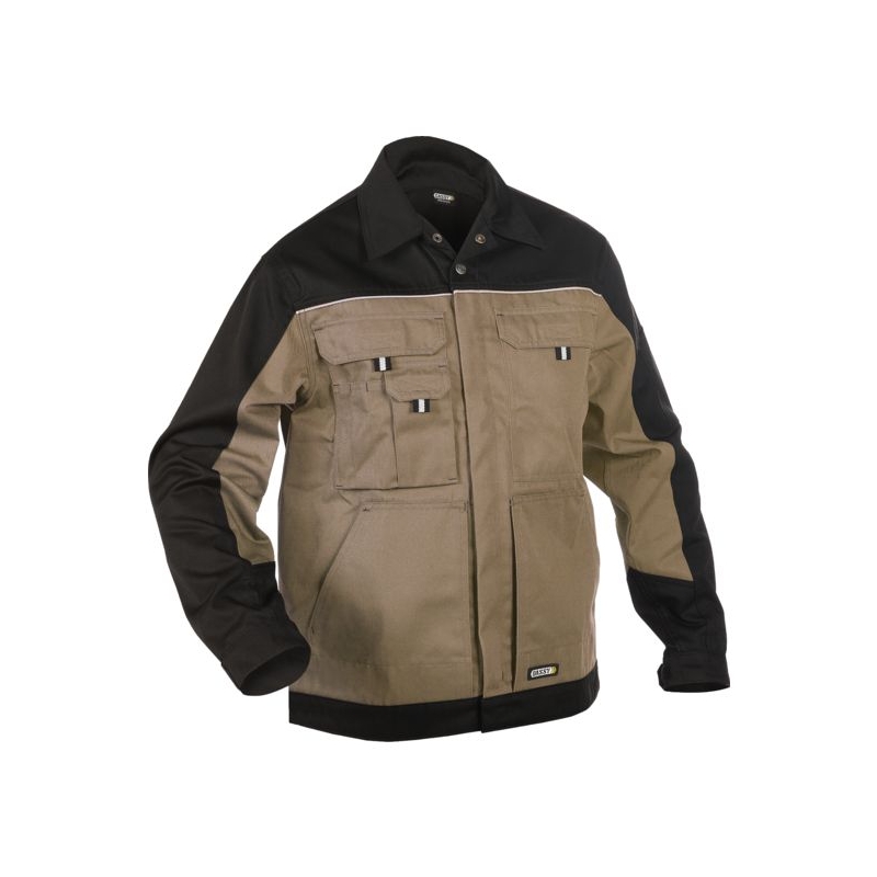 65% polyester 35% coton, 245 g/m². Multipoches : 2 poches basses, 2 poches poitrine, 1 poche intérieure, 1 poche téléphone, 1 porte-crayon, 1 poche outils. Fermeture à glissière longue cachée sous rabat, poignets réglables avec velcro. Coloris : beige/noir (BG), gris/noir (GRNO), noir/gris (NOGR) Taille : M à 2XL Pour commander, faire suivre le code du coloris et de la taille (ex : 103546-NOGR-M).