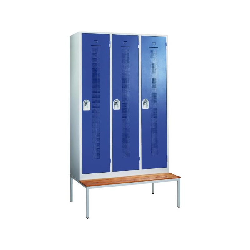 Porte renforcée par un raidisseur vertical, aérations. Porte-étiquettes, fente courrier et fermeture encastrée avec porte-cadenas (serrure à clé en option). Hauteur sur socle : 1800 mm Profondeur : 500 mm Coloris : corps gris, porte bleue Les pieds emboîtables inox ne s'adaptent pas sur les vestiaires 1 case.