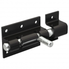 En acier, sur platine. Verrou étroit (23 mm) renforcé à visser. Goupille démontable 2 positions.